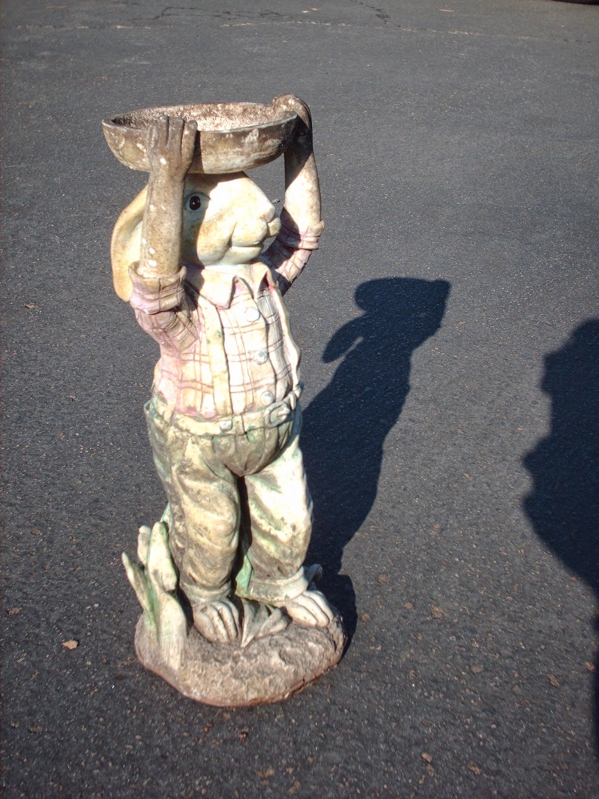 One of my wife's lawn statues placed on the driveway. The shadow outlines this rabbit.
